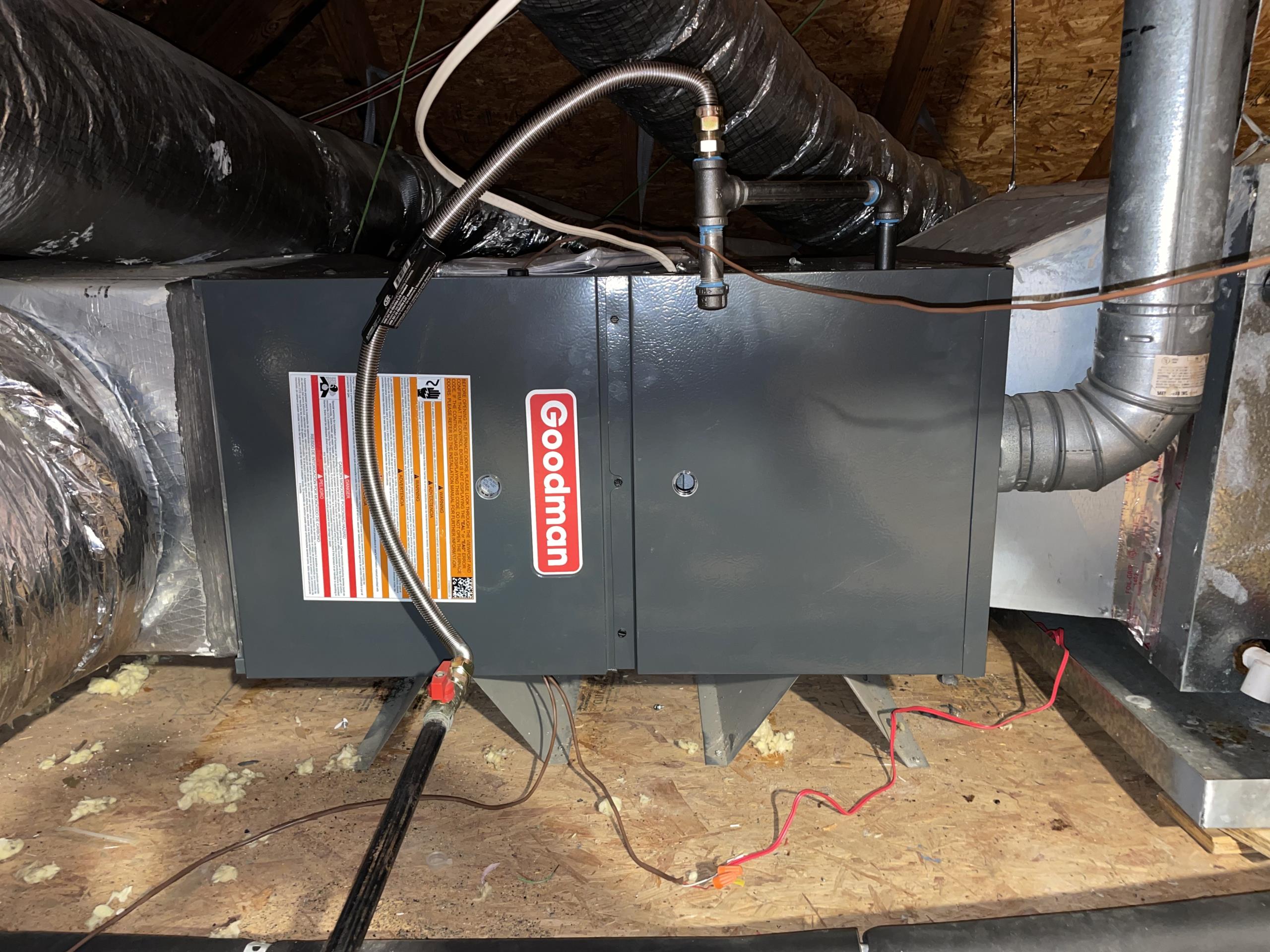 So the verdict of the gas line is a new 1/2 inch gas pipe needs to be ran upstairs to the furnace we found existing hole that goes up with nothing there or in the channel