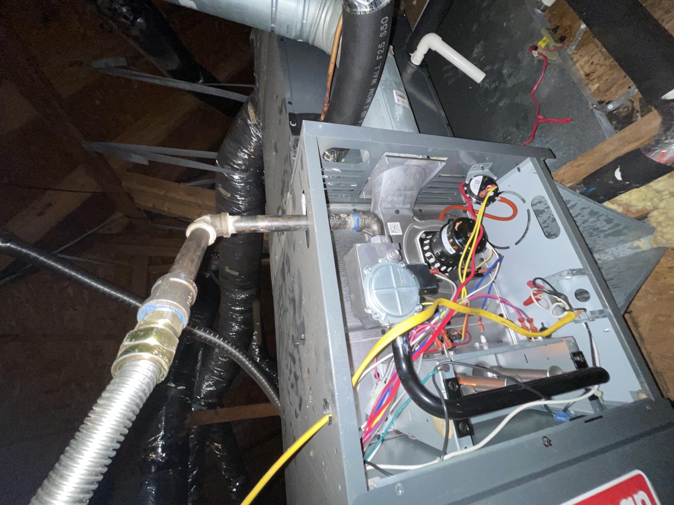 Upon arrival I found the outside unit to have a grounded compressor it well not break lose. I also found no float switches on the inside on primary and secondary to be float switch free. That’s a huge problem because of the Sheetrock removed downstairs. Also the media filter is completely clogged